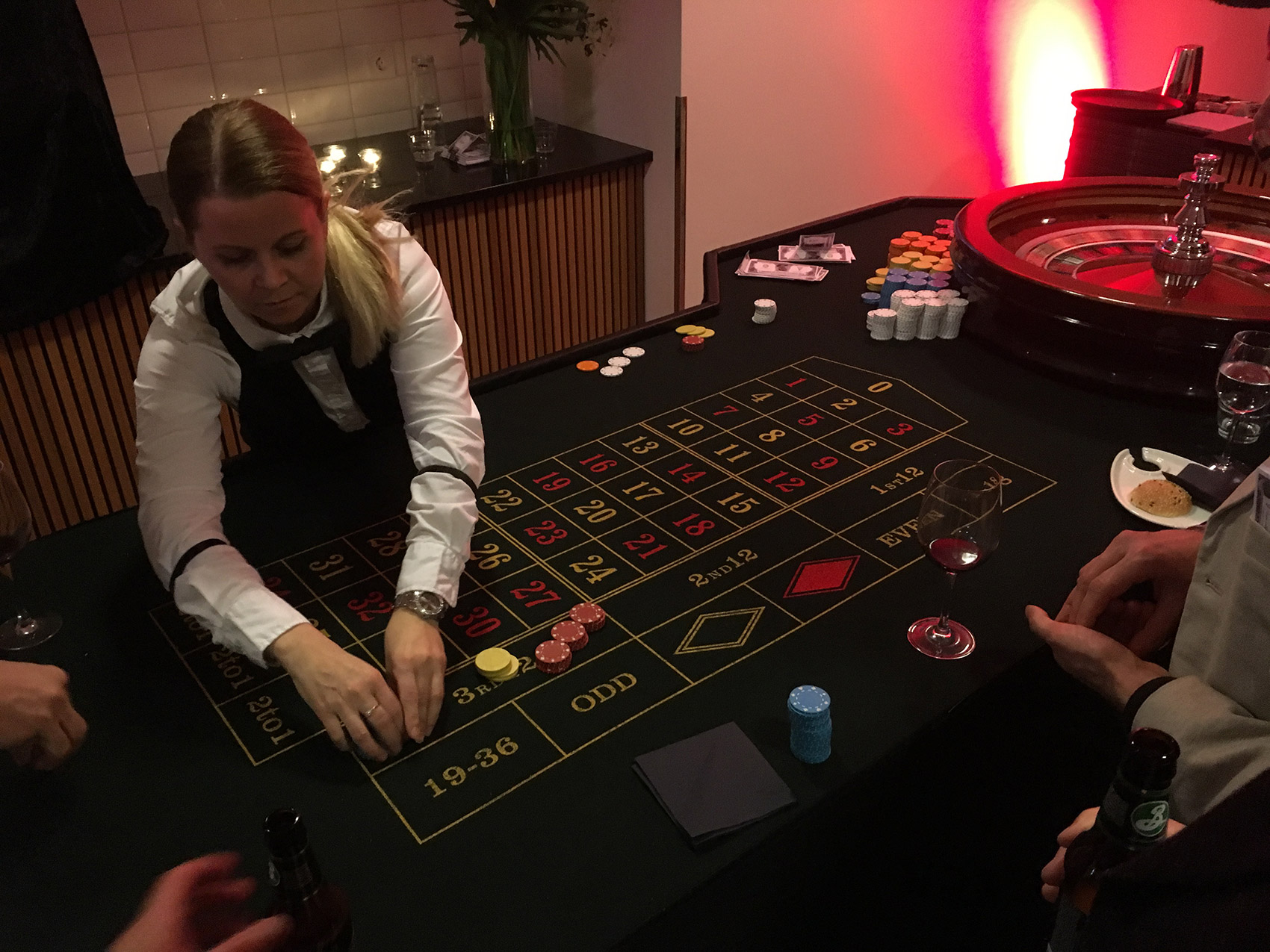 Casino – kan også arrangeres som et uformelt arrangement, og vi kan ha casinobord hvor som helst. Vi har hatt casino på alt fra små båter til partytelt i private hager til store selskapslokaler og på hoteller. Vi har arrangert casino for både 7 personer og helt opp til 800 personer. En suksess uansett antall.